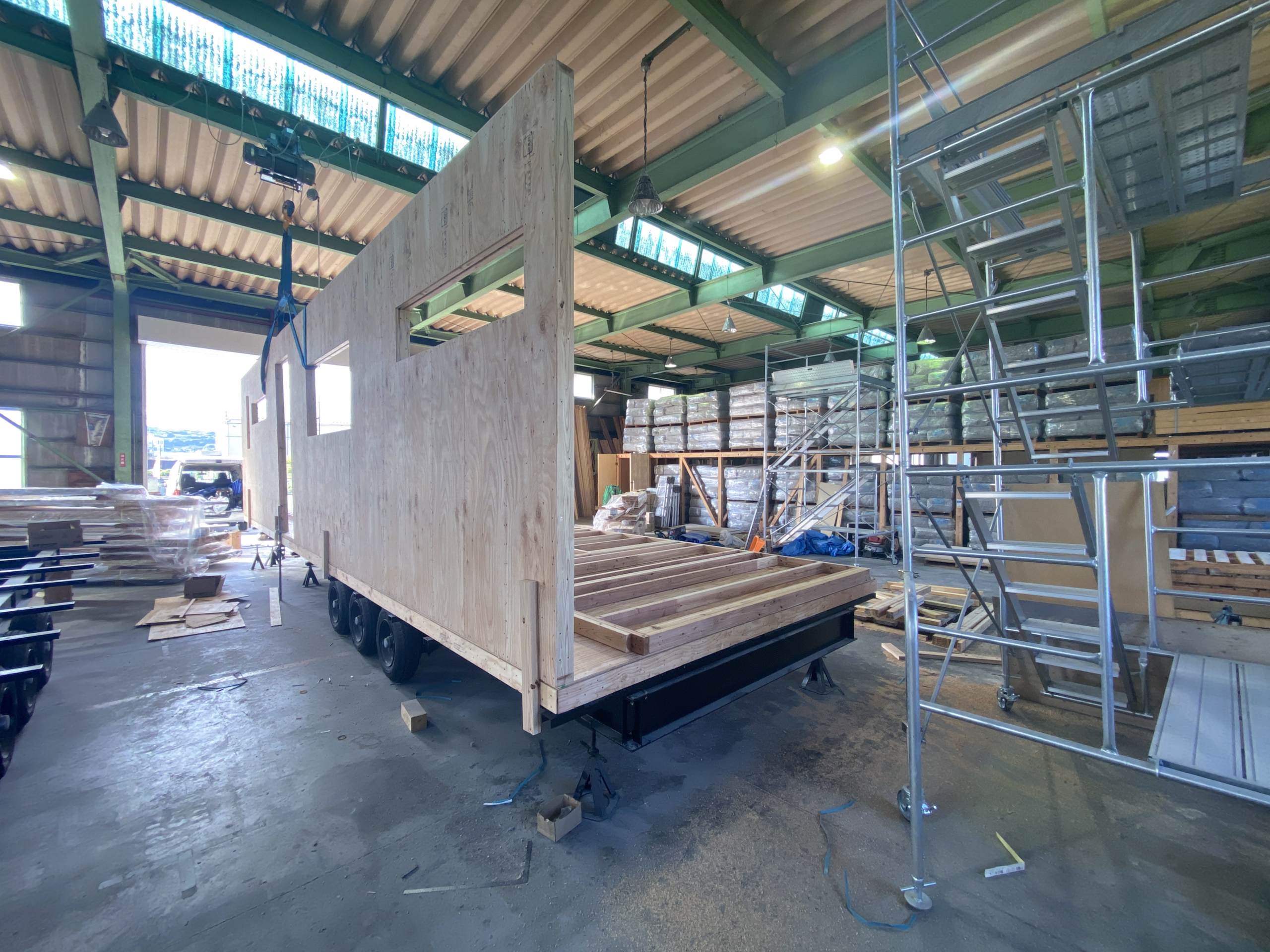 トレーラーハウス施工中壁立ち上がりました!見学できます!静岡県富士市F.T-BASE