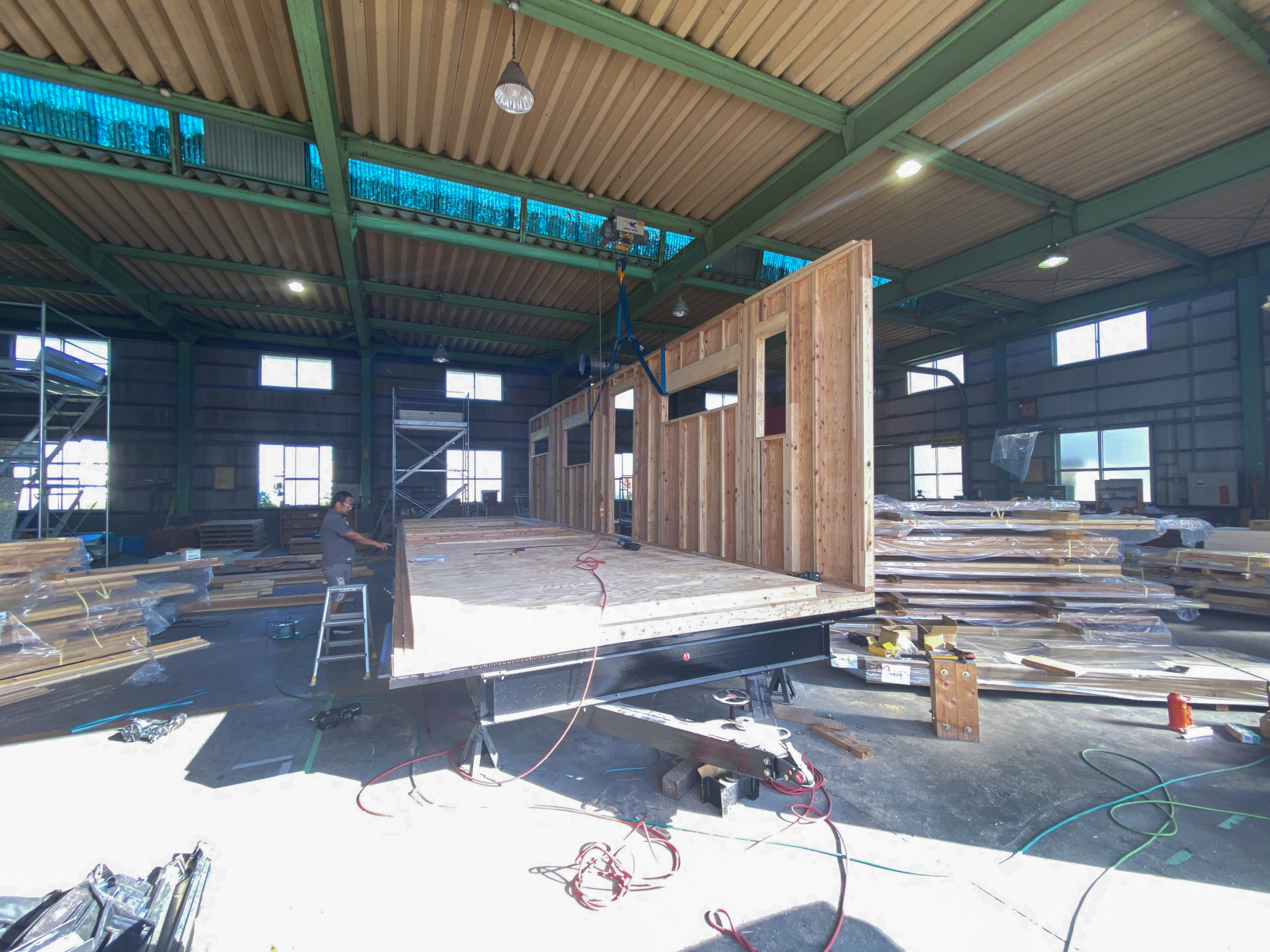 トレーラーハウス専門店『F.T-BASE』自社工場にて、新しいトレーラーハウスの製作が進行中です。
